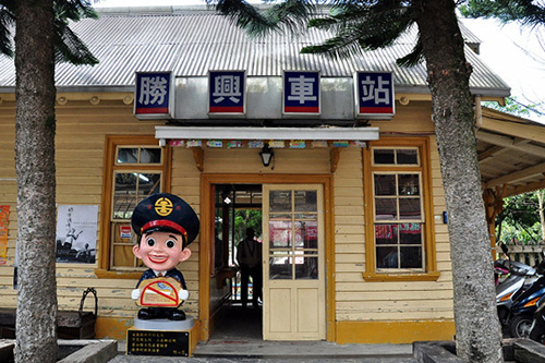 勝興火車站建於清光緒29年(西元1903年),站內月台有一座紀念碑,海拔標高402.326公尺,為台灣台灣縱貫鐵路最高點,車站整棟建築係以木頭為建材, 每根標柱都完全不使用釘子,為一大特色, 而後車站便開始客運及貨運業務,勝興火車站內設施有許多日據時代的設備,像是作為列車通行鎮的電器站牌,今日雖營運量小,但逢假日,就成了中部登山的熱門旅遊據點。