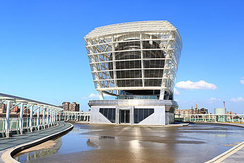曾經轟動一時,在上海世博會上閃耀著光芒的台灣館,會後歷經多次波折,如今完完整整地搬回了新竹風城,看 著屹立不搖的天燈靜靜輪番著光雕,完全不受九降風的影響,內心滿滿的感動與驚呼!四樓高的標的物,遠遠就能看見天燈, 不自覺得讓人加快腳步,想近距離觀看。